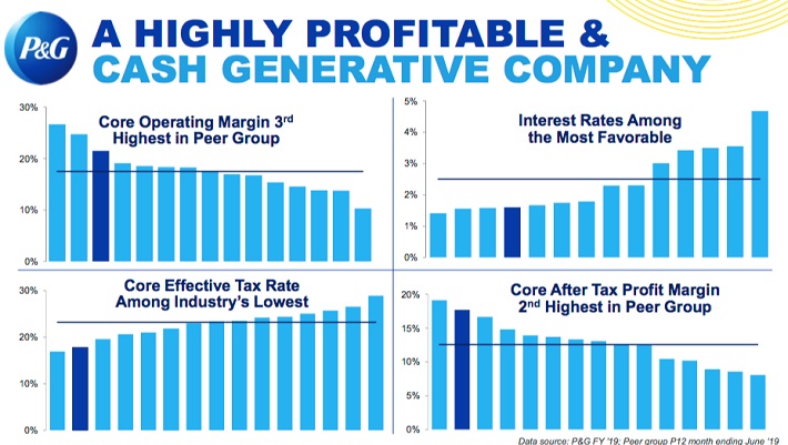 Margin expansion is a major component of P&G’s earnings growth strategy. P&G’s cost-cutting efforts have elevated its operating margins and after-tax profit margins toward the top of its peer group.