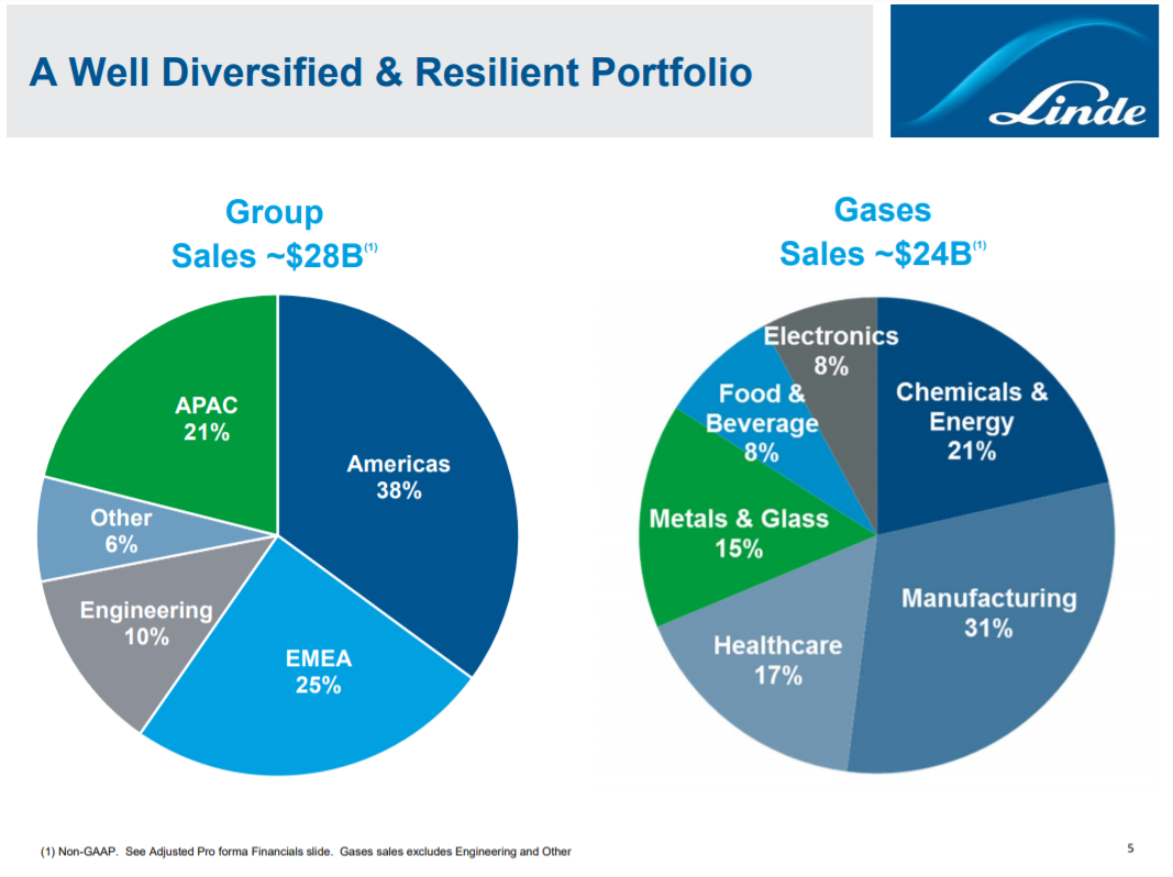 Linde’s exposure to any particular geographical area has been improved thanks to the merger, as it now has a strong, global customer base throughout a variety of industries. Indeed, Linde now serves customers in more than 100 countries around the world. In addition, it has scale and size unlike any competitor, putting it in an enviable position.
