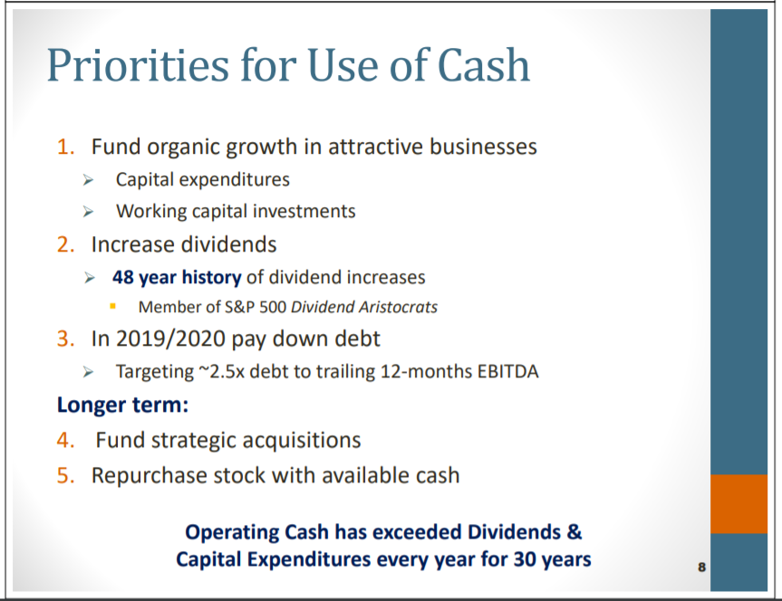 However, Leggett & Platt is in the top tier of companies in the US in terms of total shareholder returns, which is the combination of dividends and buybacks. Leggett & Platt has managed to increase its dividend for 48 years while also paying down debt, funding capital expenditures for future growth, and repurchasing its own stock.