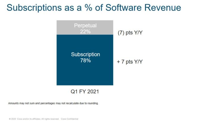 We expect 6% annual EPS growth over the next five years. Share repurchases will help boost EPS growth. Cisco has $7.9 billion, or ~3% of its current market cap, remaining on its share repurchase authorization. Cisco expects first quarter of fiscal year 2022 adjusted earnings–per–share of $0.79 to $0.81.