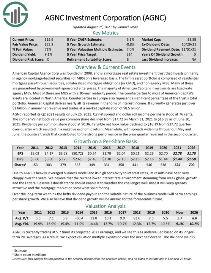 Click here to download our most recent Sure Analysis report on AGNC (preview of page 1 of 3 shown below):