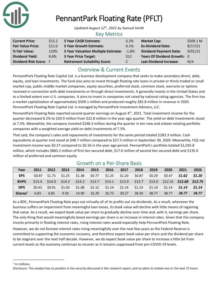 High Yield Monthly Dividend Stock #9: PennantPark Floating Rate Capital (PFLT)