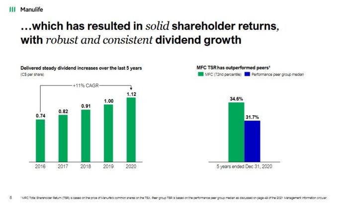 Manulife stock has rewarded investors with high dividend growth and strong total returns in the past five years.