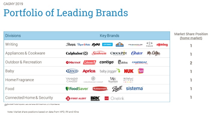 Newell is a diversified consumer products manufacturer with brands across a wide variety of product categories. Its core brands include Rubbermaid, Oster, Sunbeam, Mr. Coffee, Ball, Sharpie, Paper Mate, Elmer’s, Yankee Candle, and Coleman.