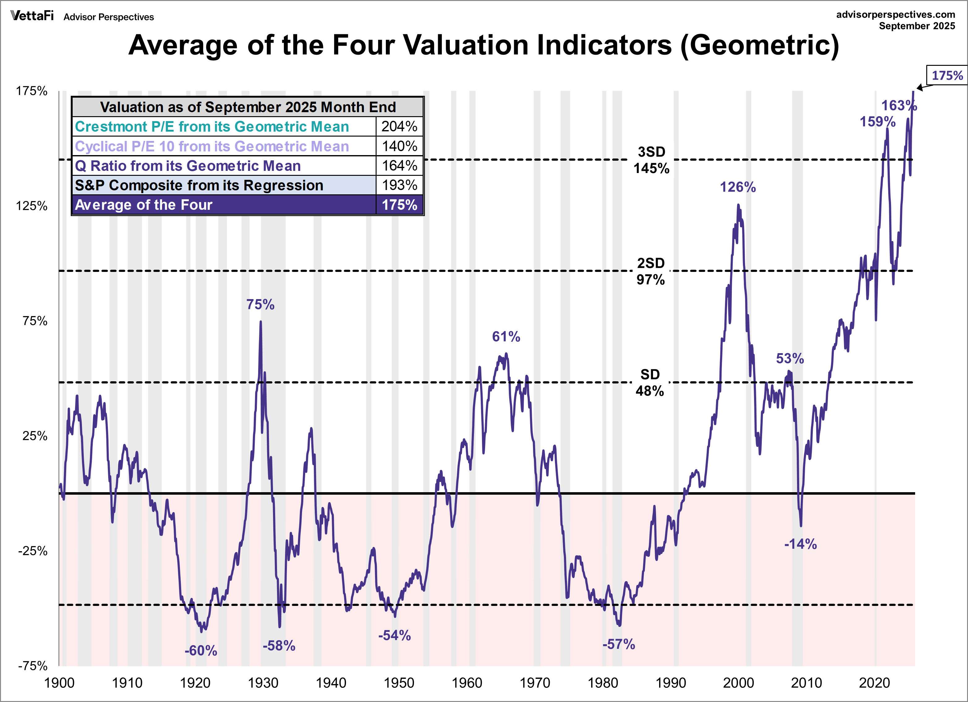 Those investors who have recognized the dangerous overpricings for large-cap U.S. stocks, and chose instead to purchase U.S. Treasuries, TIPS, and similar assets with guaranteed safe yields at roughly double their long-term historic averages, have been punished instead of rewarded. They have seen their colleagues and neighbors who became fully invested in large-cap U.S. stocks generally outperforming as already dangerous overvaluations have climbed even higher. Many of these more conservative investors have since capitulated and have decided to join those who are convinced they have to come out ahead in the stock market no matter how perilously overpriced the S 500 and similar popular retirement choices have recently become. It is emotionally difficult for most people to foresee how this must end, with the same kind of eventual bear-market undervaluations that have always occurred following the most overvalued extremes. People are psychologically too easily influenced by what they think "everyone else" is doing, which in reality is overcrowding into the U.S. stock market just before it experiences one of its biggest percentage declines for any stock market ever recorded. Mark Hulbert tabulated on October 24, 2025 how we have reached all-time record extremes for the most reliable fundamental indicators: