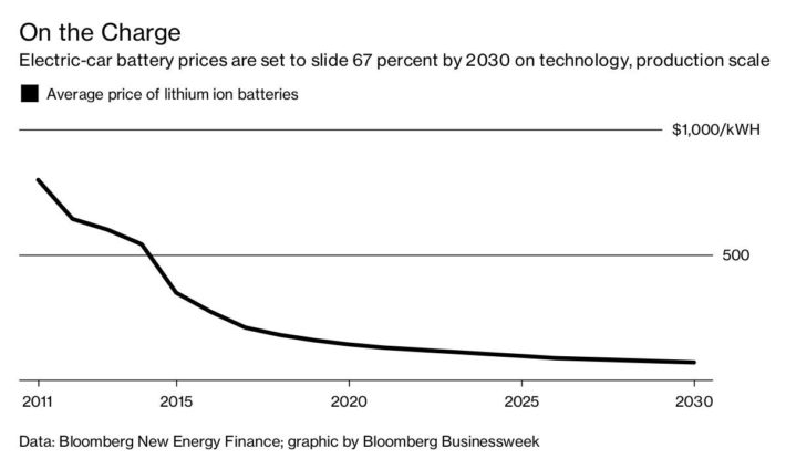 The production cost of electric vehicles has greatly decreased in recent years, thanks to the sustained decrease in the cost of batteries, which comprises approximately one-third of the total production cost.